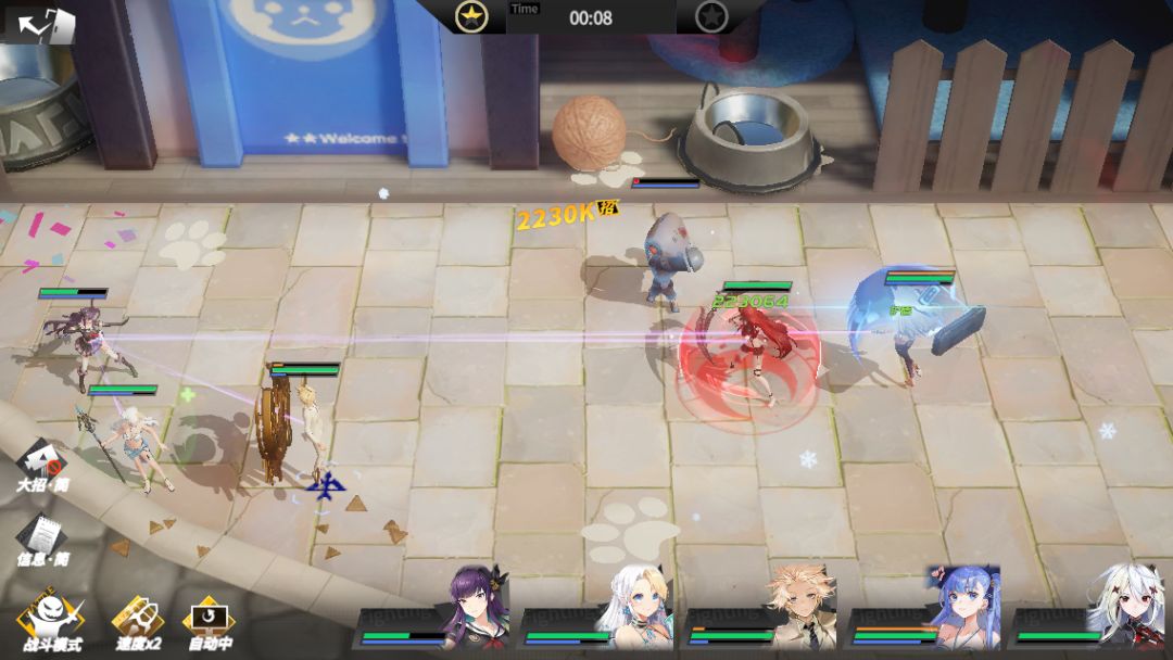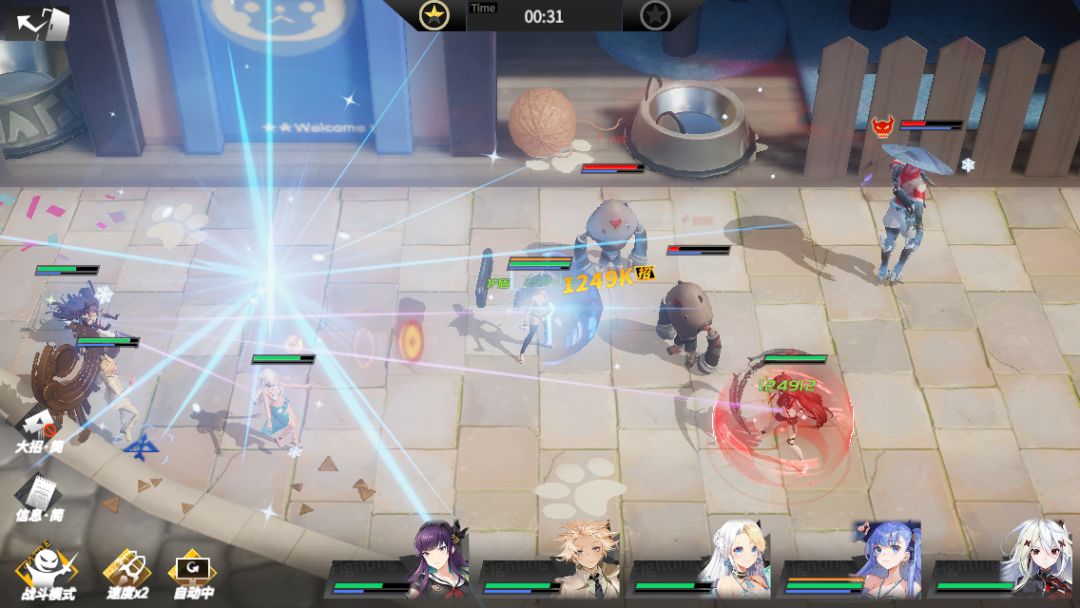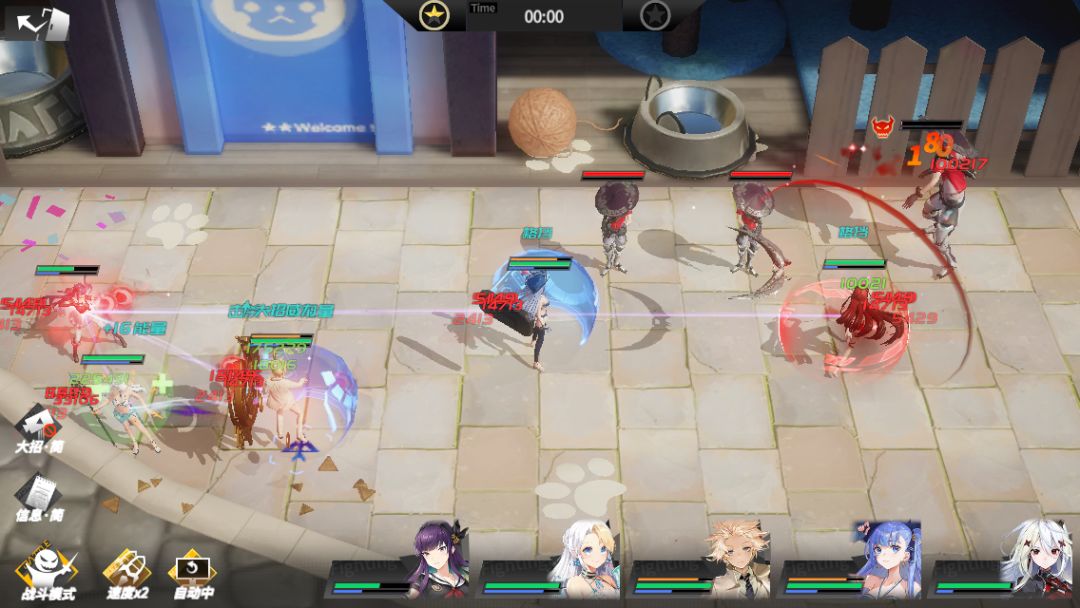 阵容:蒂娅(主力输出)、卡缪(输出、控制)、彩音(肉盾、冰冻)、治疗(链子、海伦)