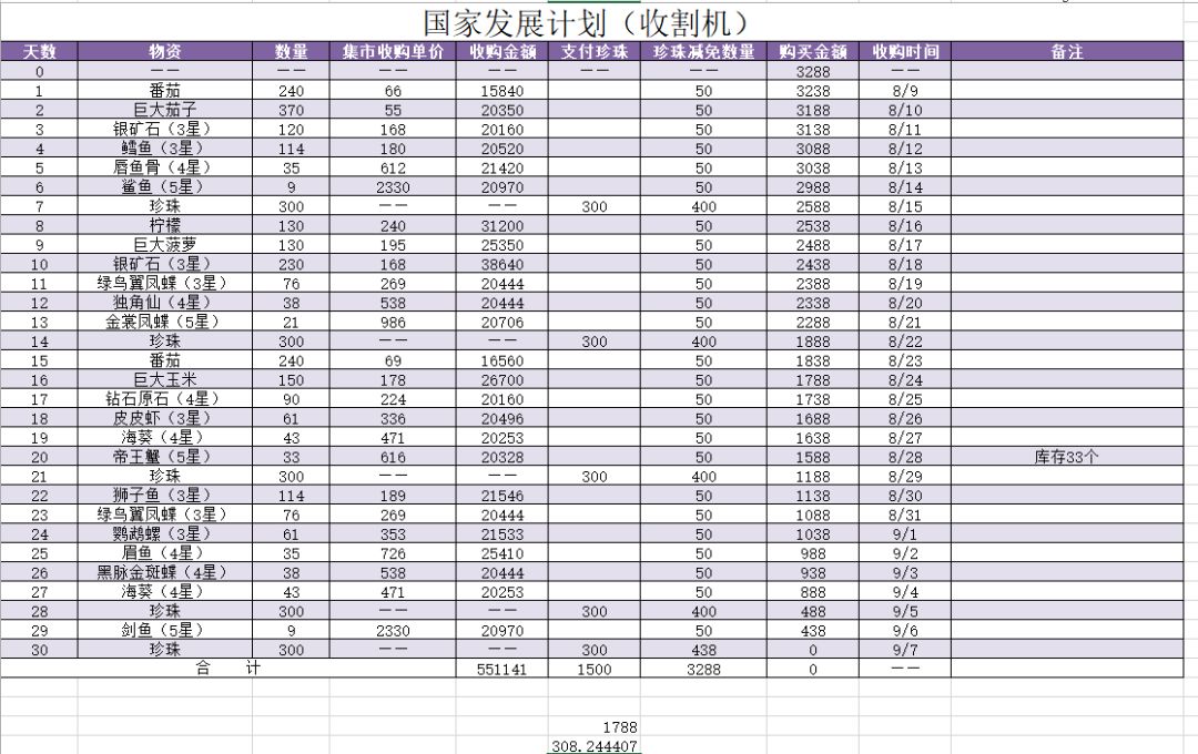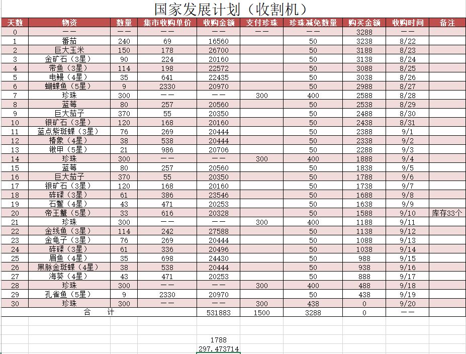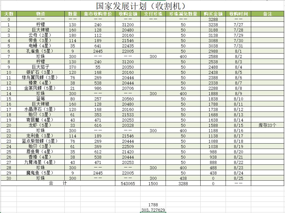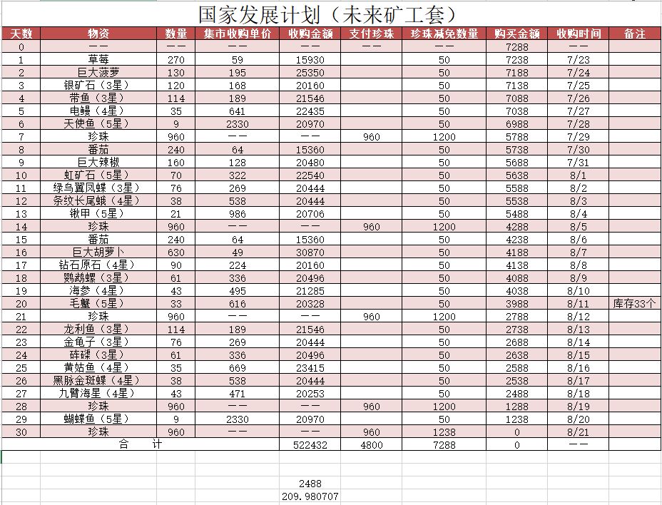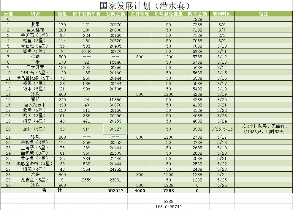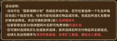 自从出了组队摸贝之后,国家“破产”计划就不会再卡物资了~按照出现的顺序,初始可以选择:潜水套、小虫套、收割机,然后会逐个出现大鱼套、大矿套,大虫套~