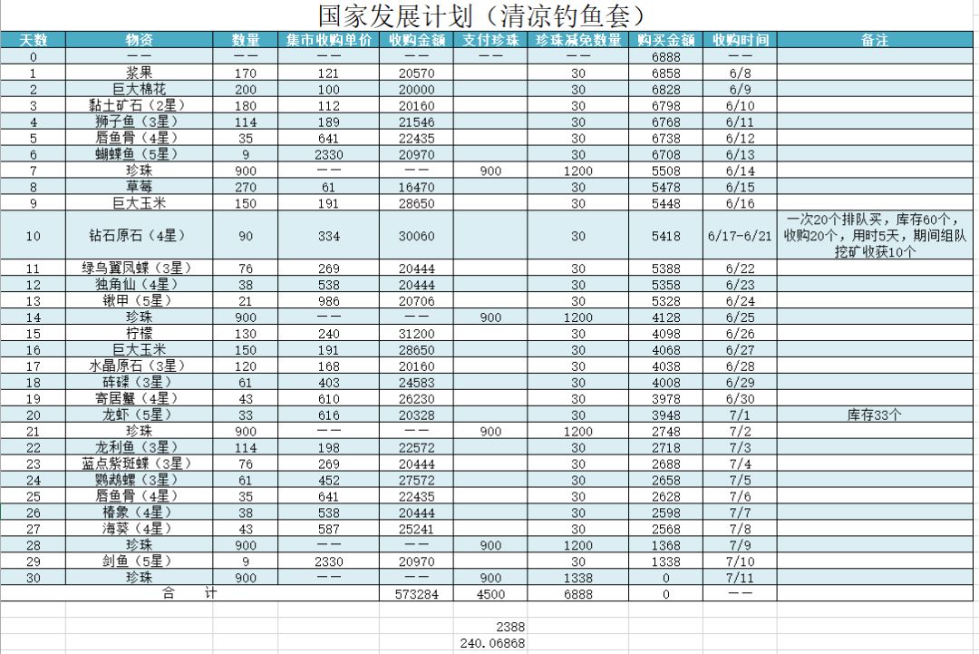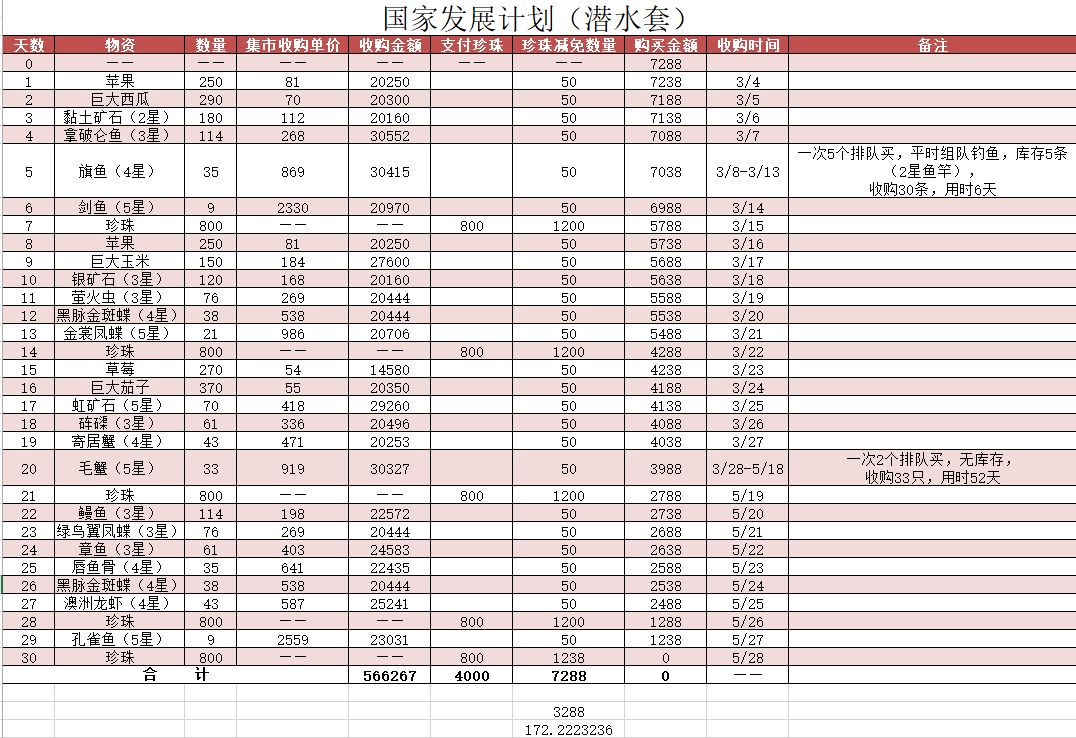 做国家计划如果有额外多余的珍珠,建议购买:沙滩套装、鱼竿皮肤、新宠礼包、喷宠皮肤、企鹅套装、深海潜水套装。