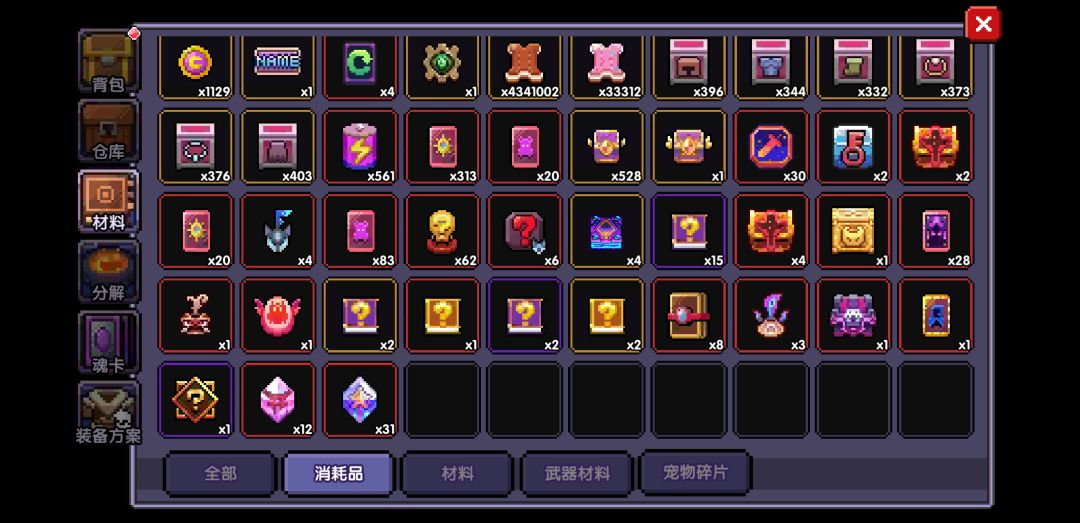 450多天的连续签到,前天断了,就不想玩了,囤不到关服了,这是最后的囤量了。