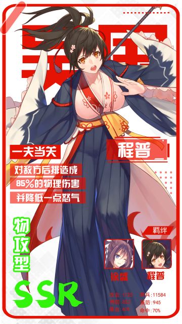 程普,字德谋,右北平土垠人。初为州郡吏,从孙坚征伐,镇压黄巾军,破董卓。后助孙策经营江南,官拜荡寇中郎将,领零陵太守。策死,与张昭等共辅孙权。建安十三年,与周瑜为左右督,大破曹操于赤壁。官至江夏太守、荡寇将军。