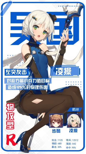 凌操,吴郡余杭人。孙策锋起淮南时,征讨吴贼严白虎,白虎不敌,奔走余杭,于路劫掠;凌操便与儿子凌统引乡人杀败之,父子二人来投孙策,孙策使为从征校尉,同引兵渡江。孙权统军后,凌操从讨江夏黄祖。