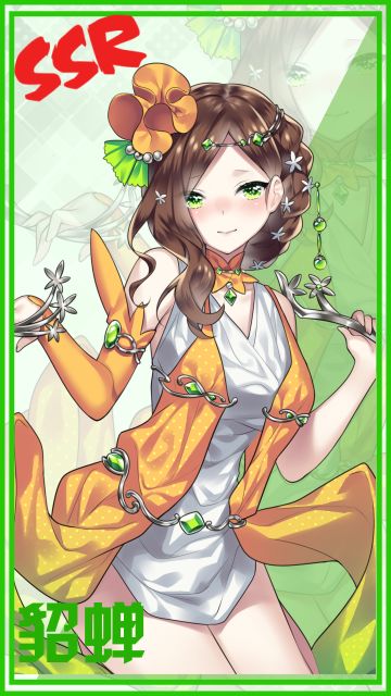 所谓‘马中赤兔,人中吕布,女中貂蝉”,貂蝉是古代中国四大美女之一。书上一句:‘年方二八,色伎俱佳”,又形容她的容貌舞姿:‘红牙摧拍燕飞忙,一片行云到画堂。眉黛促成游子恨,脸容初断故人肠。榆钱不买千金笑,柳带何须百宝妆。舞罢隔帘偷目送,不知谁是楚襄王。”貂蝉是汉献帝的大臣王允的歌妓,她不但貌似明月,且能歌善舞。一天晚上,她在花园拜月时,一片云彩将月亮遮住了。王允得意地说:‘月亮比不过我的女儿,都害羞地躲到云的后面去了。”从这以后,貂蝉就被人称作‘闭月”。貂蝉为东汉末年司徒王允家的义女,国色天香,有倾国倾城之貌,为拯救汉朝,见东汉王朝被奸臣董卓所操纵,于月下焚香祷告上天,愿为主人担忧。王允眼看董卓将篡夺东汉王朝,设下连环计,并授意貂蝉施行:王允先把貂蝉暗地里许给吕布,再明把貂蝉献给董卓。使董卓、吕布两人反目成仇,最终借吕布之手除掉了恶贼董卓。吕布英雄年少,董卓老奸巨猾。为了拉拢吕布,董卓收吕布为义子。从此以后,貂蝉周旋于此二人之间,送吕布于秋波,报董卓于妩媚。借吕布之手除掉董卓,之后貂蝉成为吕布的妾,董卓部将李傕击败吕布后,她随吕布来到徐州。下邳一役后,吕布被曹操所杀,貂蝉跟随吕布家眷前往许昌,从此不知所踪,貂蝉最后到底到哪里去了呢,有说跟了曹操,有说隐居了。她的胆识,如《三国演义》所载,也绝不亚于昭君、西施。只是历史上真的是否有貂蝉?史籍没有明确记载,因此这位倾倒众多英雄豪杰的美人的真实身份,至今尚无定论。在三国时代,在整个华夏历史上,她都是无可撼动的绝世美人。“马中赤兔,人中吕布,女中貂蝉”,英雄美女,千古流传。