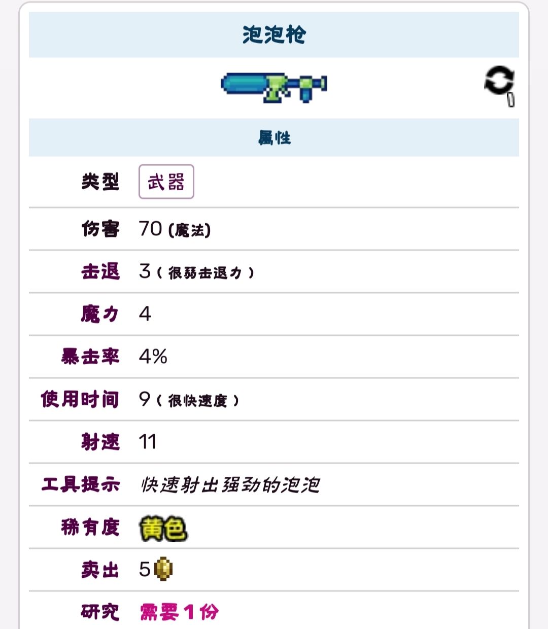 ★水晶子弹:1水晶碎块+100火枪子弹在山铜/秘银砧旁边合成100颗,撞击后分裂造成额外伤害。