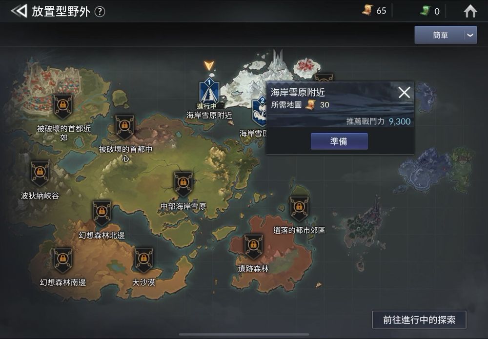 那么强化角色最重要的素材要如何取得呢?就要提到本作丰富的PVE和PVP玩法了,在放置型野外中,我们可以从菜单中选择想挂机的地图,进入后会看到旁边有击杀周围敌人的任务目标,每完成一次目标就算完成一轮挂机,需要消耗地图才能继续挂下一轮,只要地图数量足够过程都是自动进行,而每挂完一轮BOSS的出现机率会逐渐上升,成功击杀BOSS就能获得丰富的奖励。