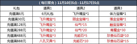 【活动简介】活动期间累计充值达到指定金额即可领取惊喜礼包!