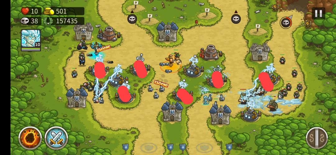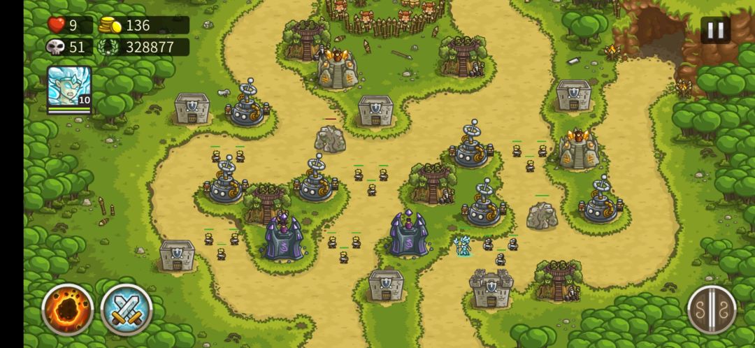 ②辅助炮塔:圣骑士,针对移速快的特点,不建议魔法塔打减速,一是攻速慢,怪多收益不高,二是怪物甲都不高,没必要;选圣骑士的理由是回血快,拦怪效率高