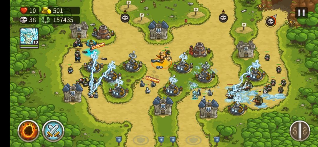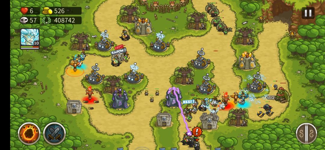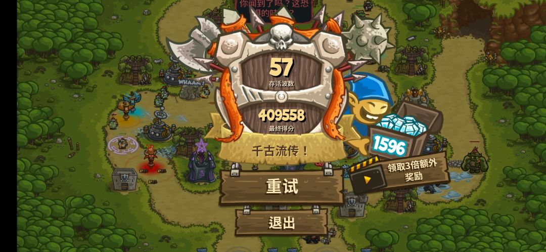大概到40波以后,怪冲的已经很猛了,稍不注意骑兵哥布林就跑了,钱来的也越来越快,有钱就用掉,升级点技能都可以