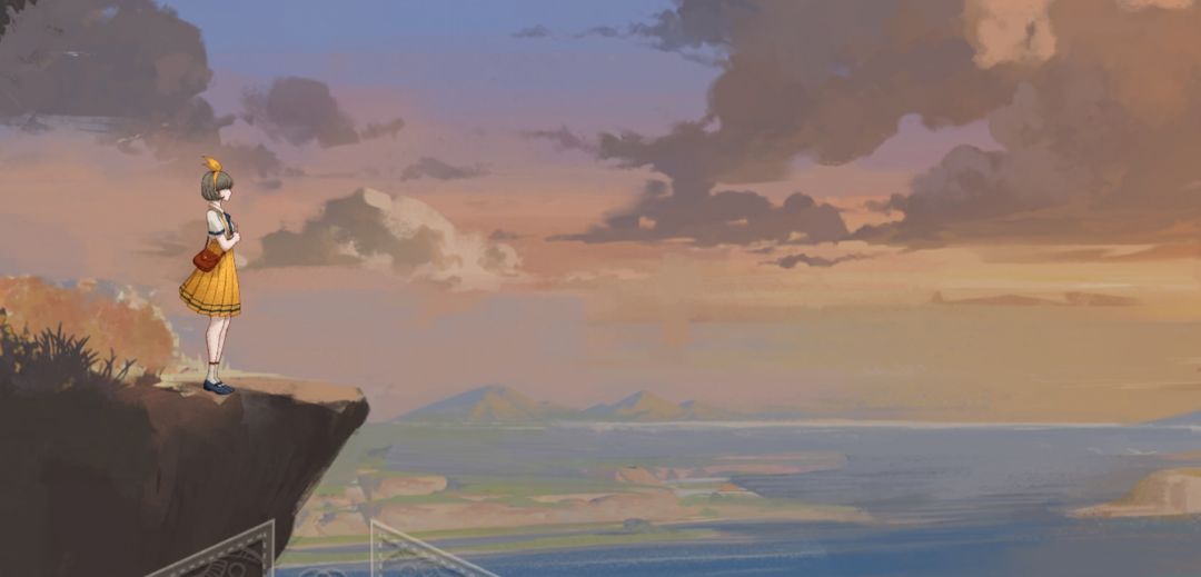 最终,当妹妹终于得以沿着小路来到海岸边,她第一次见到这样景色:碧蓝的海面、被夕阳染红的云层和如水晶般通透的天空,天地间的风景像幅画一样寥廓。