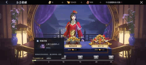 每位公会成员每日都可以在这里进行捐献,根据消耗的货币种类、数量的异同,可以获得不同数量的公会贡献。