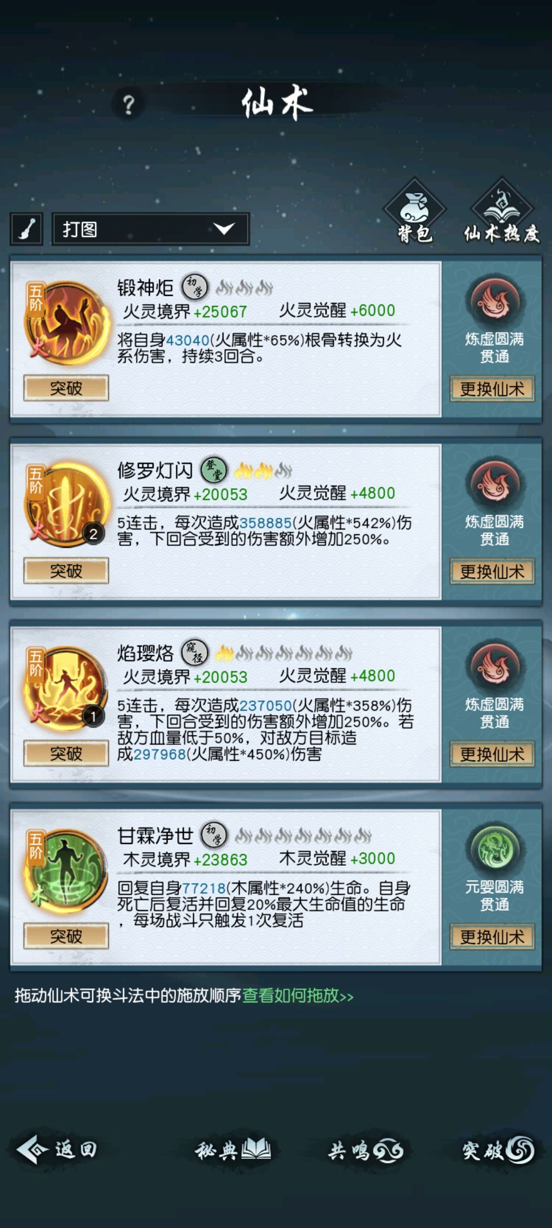 土感觉反而是最容易的(感觉削弱过连击和反击,怪的耀光比之前感觉连击和反击概率低,感觉反击很少,也可能是我的错觉记不清了),参考一下我的仙术排列,宠物带蛟或者猴子纯回血,基本可以打2-3回合,纯靠飞剑磨是不可能打过的。