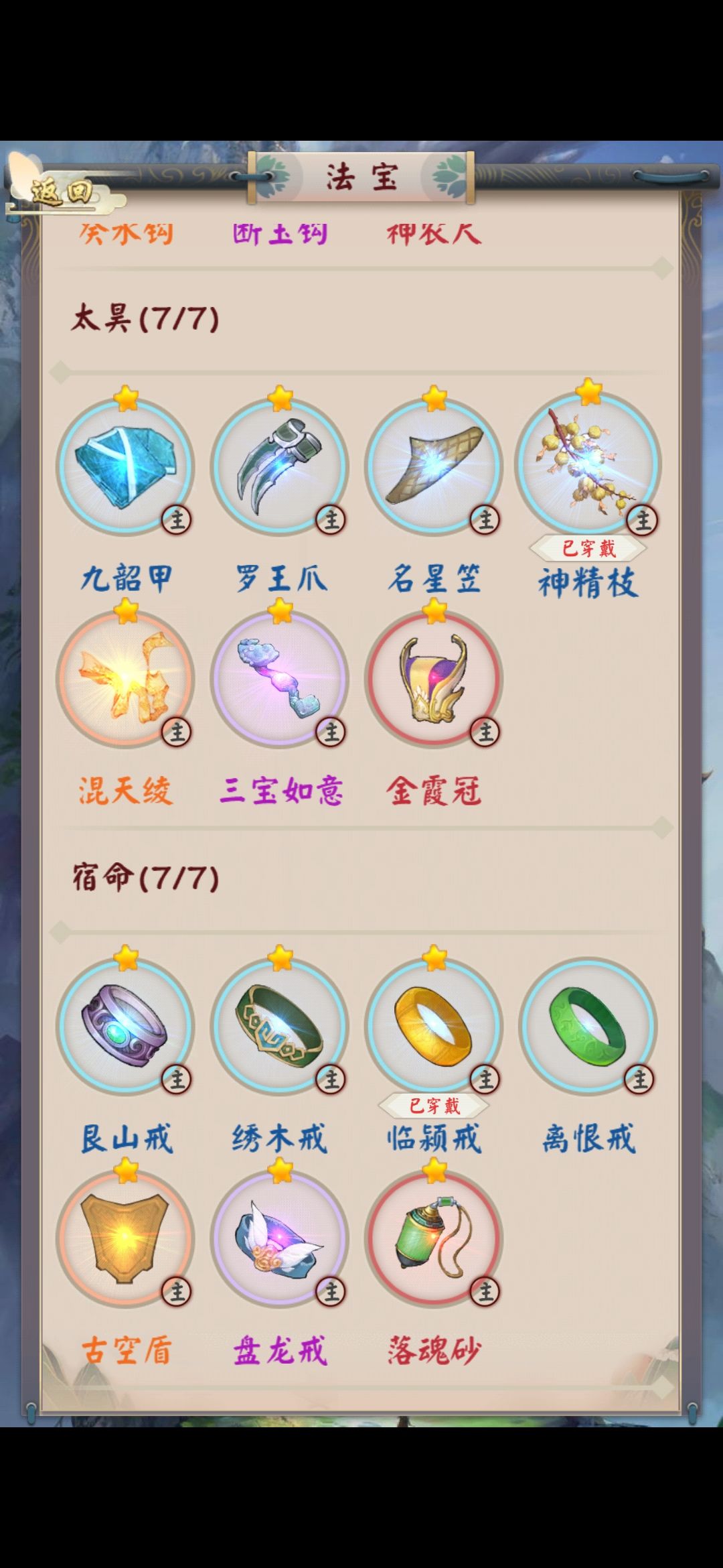 又有的玩家朋友要问了如果这两个法宝都升星了,第三个法宝选什么呢答案来了