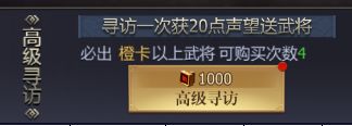 用武勋高级寻访每次都可以获得橙色武将,运气好的时候甚至能得到S+.