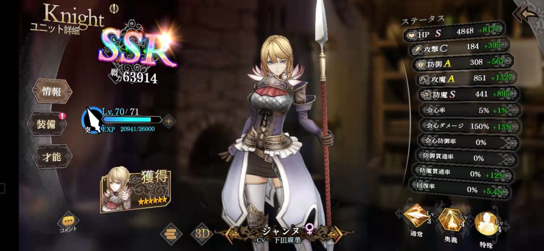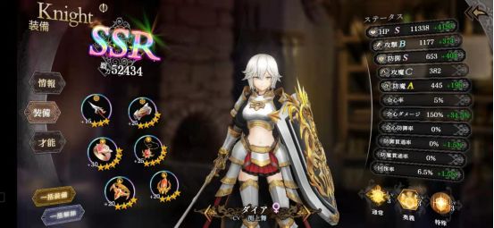 7. 黛亚 本游唯一正统T,可以降低敌人伤害,承担周围队友部分伤害,还有生命强化及受伤害回血,按理是非常强势,可惜这个游戏输出才是王道,黛亚的作用目前仅在开荒期打高等级试炼BOSS体现作用,后期贞德的出现将所有输出手伤害提升后就推出了舞台。推图期不推荐练,当BOSS卡关时可拉出来使用。
