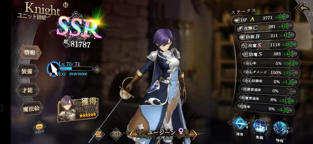 5.尤金 日服后期角色被拿到国服开服池了,那必然是得强力推荐,作为辅助她可以上群体虚弱(30%易伤),作为输出,她能在竞技场开场让所有人黑血,前期的定位可作为主力魔单输出手,后期熏出了可转型辅助,竞技场能称霸到反伤剑出来前,是氪佬必6星的角色,普通玩家如果开服没有单UP池子可以选择放弃,氪佬抽了她就可以适当放弃公主,妹妹等魔攻型角色。
