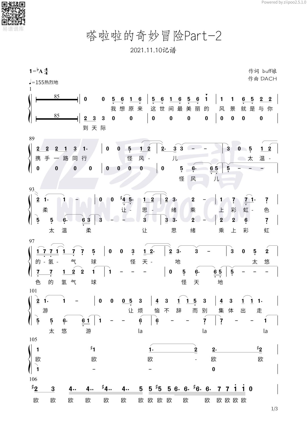 昨天把嗒啦啦的生贺歌midi给扒了出来,不过为了顺应自主完成制谱工作的活动要求,我这儿就不直接提供midi文件了。但我已把midi转成了简谱以供大家参考,至于无参调校的工作还得需你自己来完成。