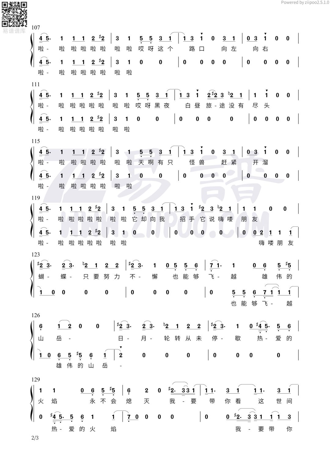 例如谱中的第123小节里共有5个2,第一个2为#2这不必多说,第二个2虽然没带#号,不过由于受到了第一个2的#号的影响,所以第二个2实际上也是#2,但从第三个2开始出现了还原号,表示从这个2开始,后面的2皆不受第一个2的#号影响,所以第三四五个2表示的皆为2。