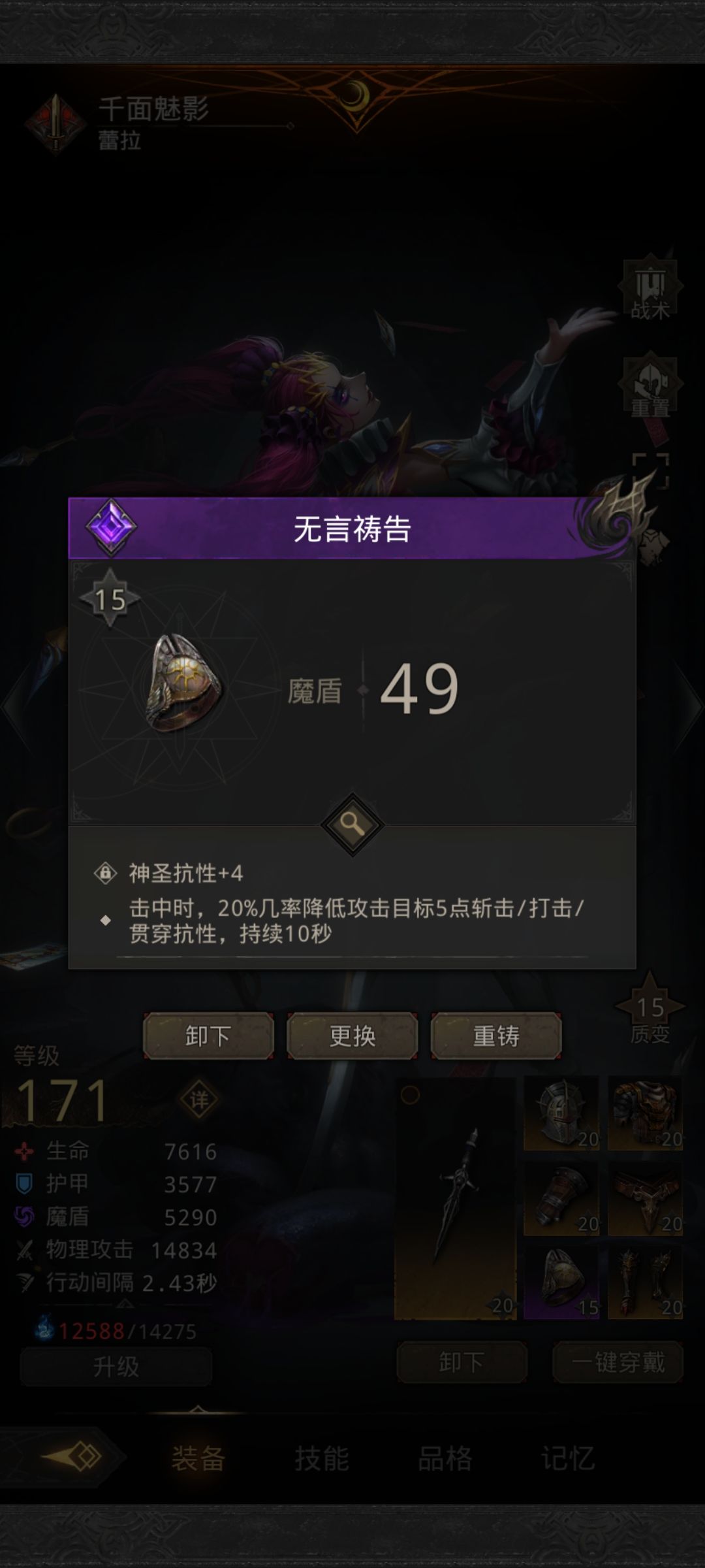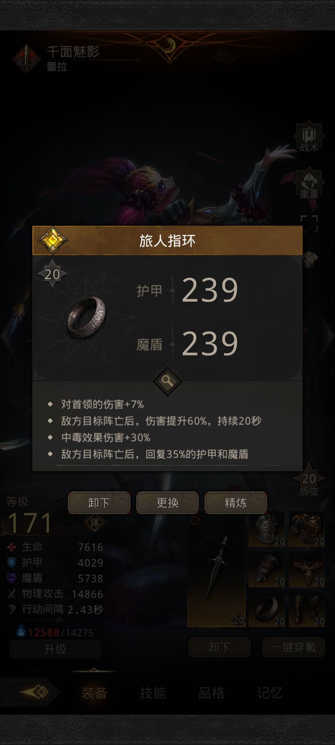 防具,熔炼工一套加图7腰带,打造戒指,词条基本算是顶尖了,属性这玩意中后期没用了,词条才是硬菜。