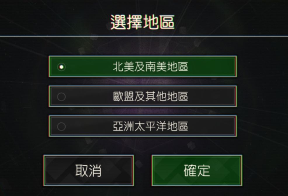 刚开始进入游戏前,国际服还可以进行地区的选择。