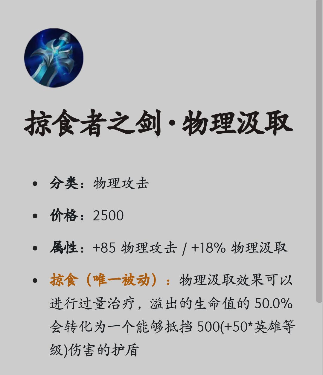 在上次更新中,将3%吸血调整为4%,还是太保守了,甚至不如狩猎之翼(打野鞋)提供的5%吸血