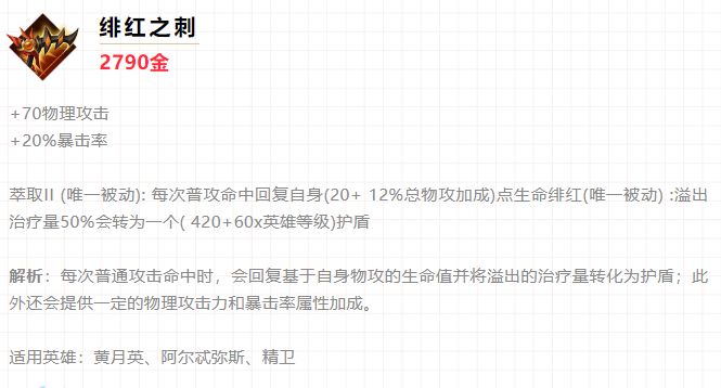 比如射手的深红袖剑,普攻回复20点生命,在前期有很高的性价比,尤其这赛季射手缺乏续航能力。