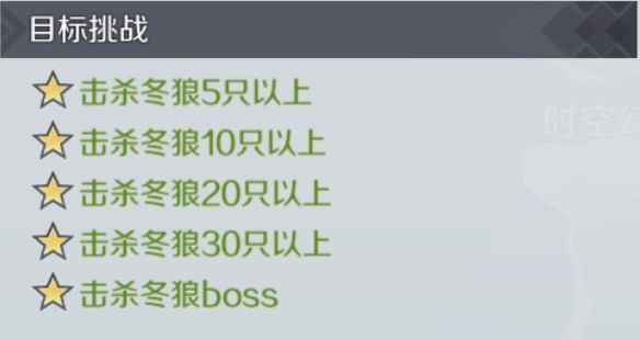 副本攻略:推荐携带暗系英雄,水系英雄和火系英雄以及范围攻击类英雄为编队成员,第一波怪物为[光]冬狼*9;第二波怪物为[光]冬狼*4,[火]冰霜巨狼*2;第三波怪物为[光]冬狼*3,[风]风之子*1,只有击杀当前波数怪物,方可前往下一波怪物所在区域。