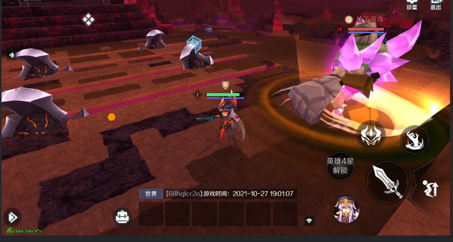在废墟之国-水晶森林找到“战争魔像”身边点击挑战