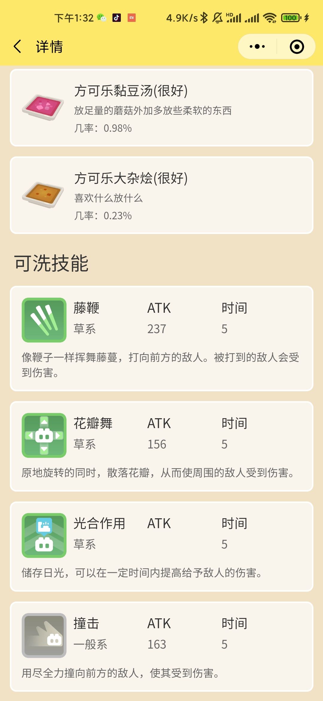 推荐一个微信小程序,宝可探险助手,很好用,除了没有攻略其他啥都能搜到,宾果,技能,哪个料理出什么,多少几率都有,很方便的