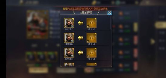 看着例子就知道高品质武将要求的卡片越多而且越好,当然也更厉害。