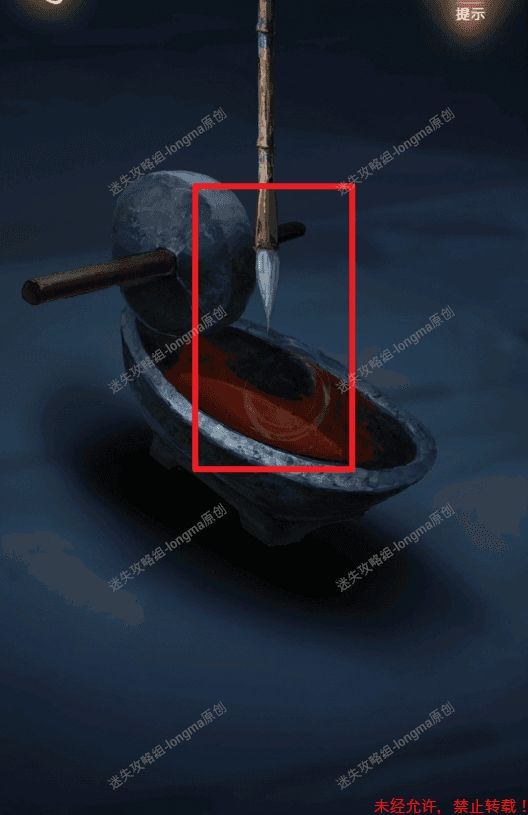 47.进入前院,点击捕鱼得到的木盒,将木盒上的图案转动拼好(如下图),得到钥匙,打开房门。47