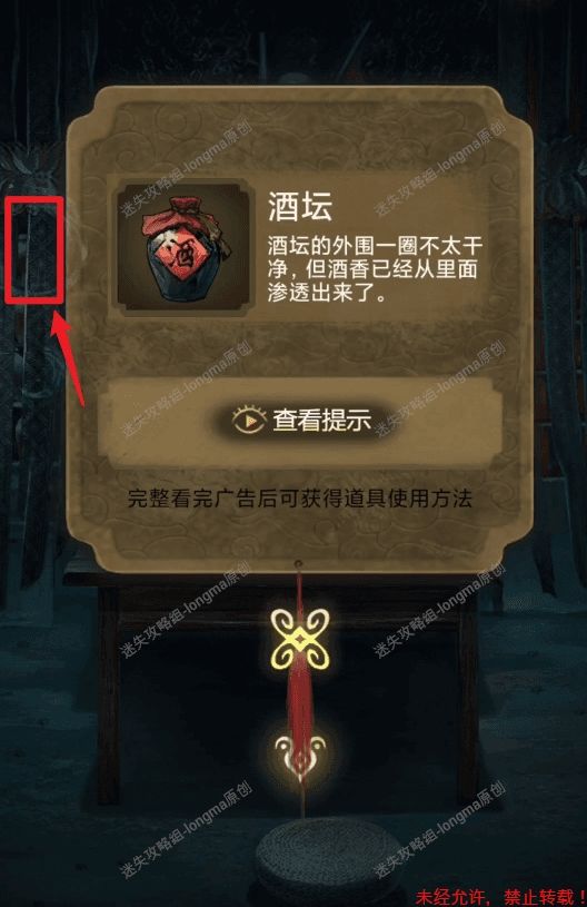 56.再次来到山神庙的神像处,点击左侧,得到一坛酒。56