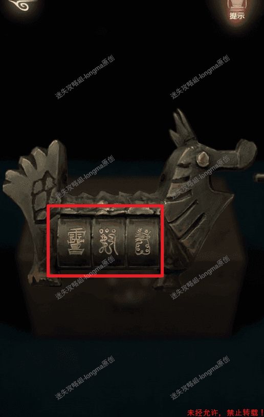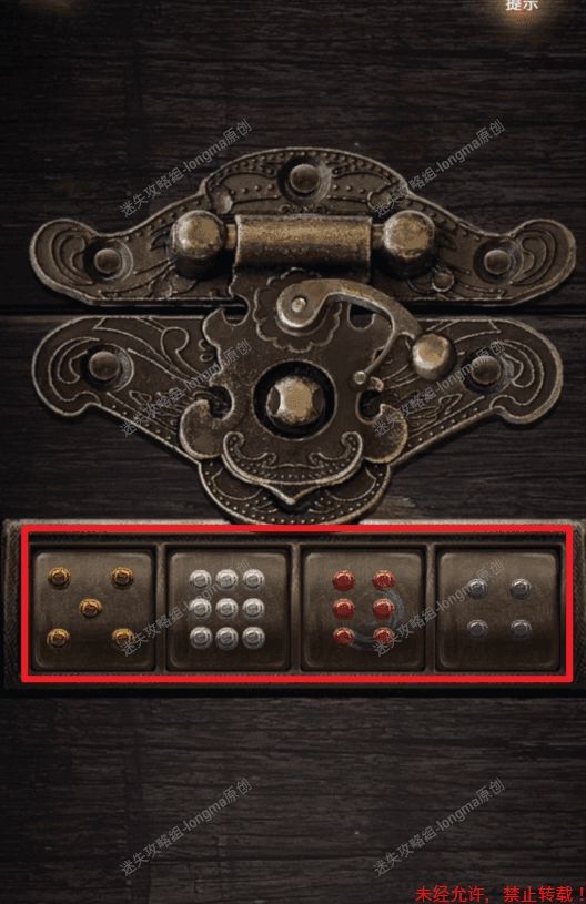 65.进入里屋,点击箱子,使密码锁图案对应幡面找到的线索,打开箱子,得到石莲和一杆旗。65