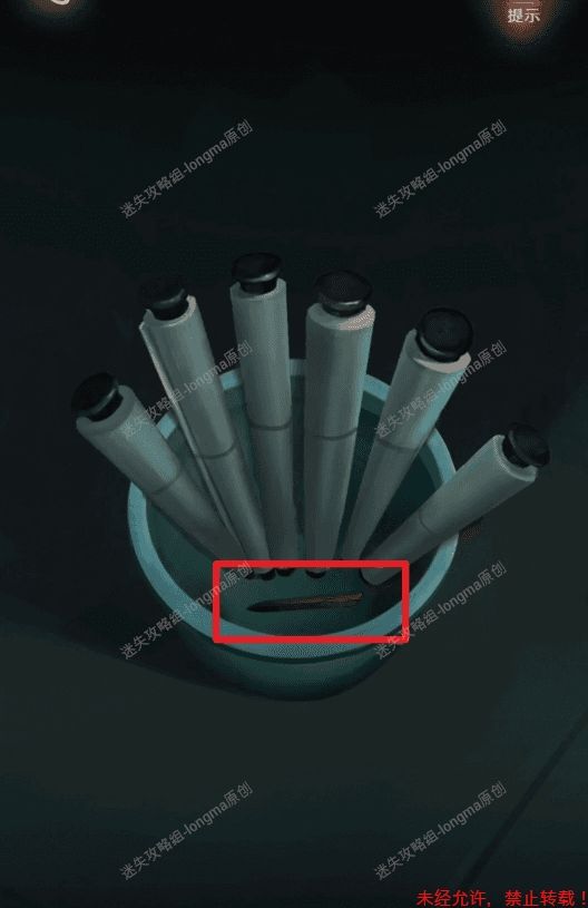 49.点击桌子后面花篮,再点击花篮白色部分,使用竹签,得到密码:7965。49