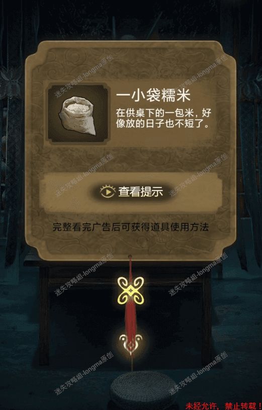 36.来到神像处,点击案台下的袋子,得到一小袋糯米。36