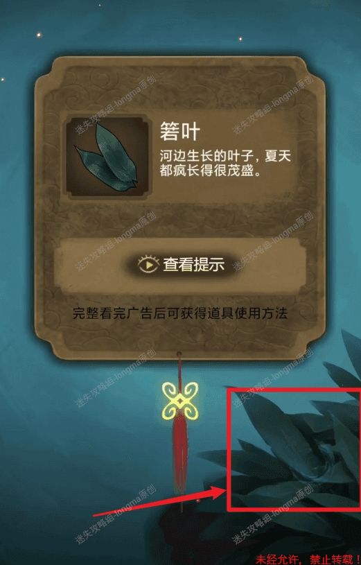 34.在水池边找到箬叶,点击箬叶,得到箬叶。34