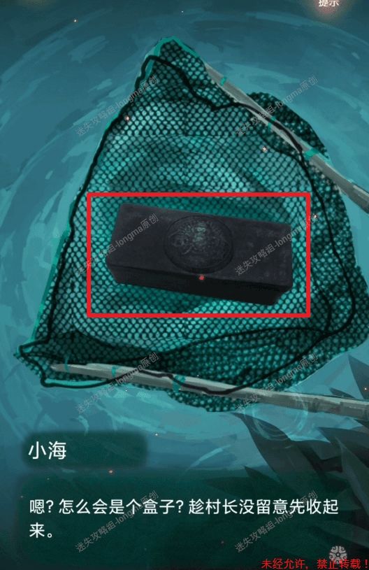43.将渔网先给村长,然后帮村长使用渔网捞鱼,得到一个盒子和两尾鱼。43