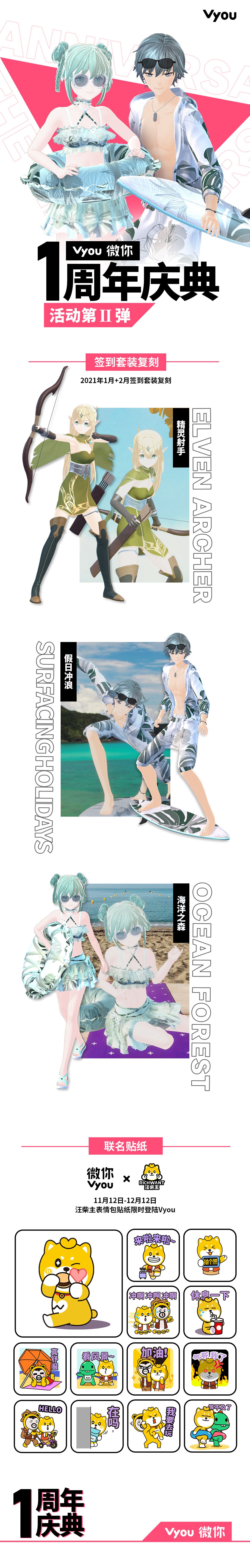 ⭐ 除此之外,超可爱的“微笑天团”汪柴主家族表情贴纸也即将在本周末限时登陆Vyou,记得来Vyou体验梦幻联动哦!