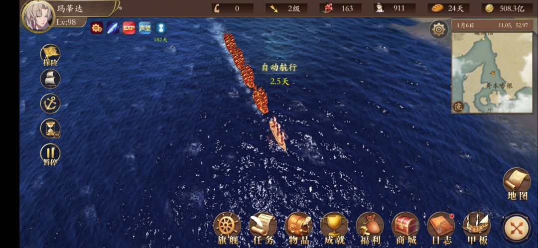 最低要求:1、能打得过奥斯曼国家队和汉萨,通常两条强排就可以了,我是一条死排。补给充足,够20天的航程,不然就要用探索大法续航了。