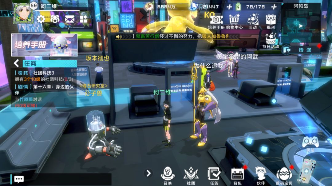 第5点是在主城地图中有一个分子兽,找它可以将不用的魂石换成其他数码宝贝的魂石,冷却时间是1周,大家每周可千万不要忘记了去兑换!