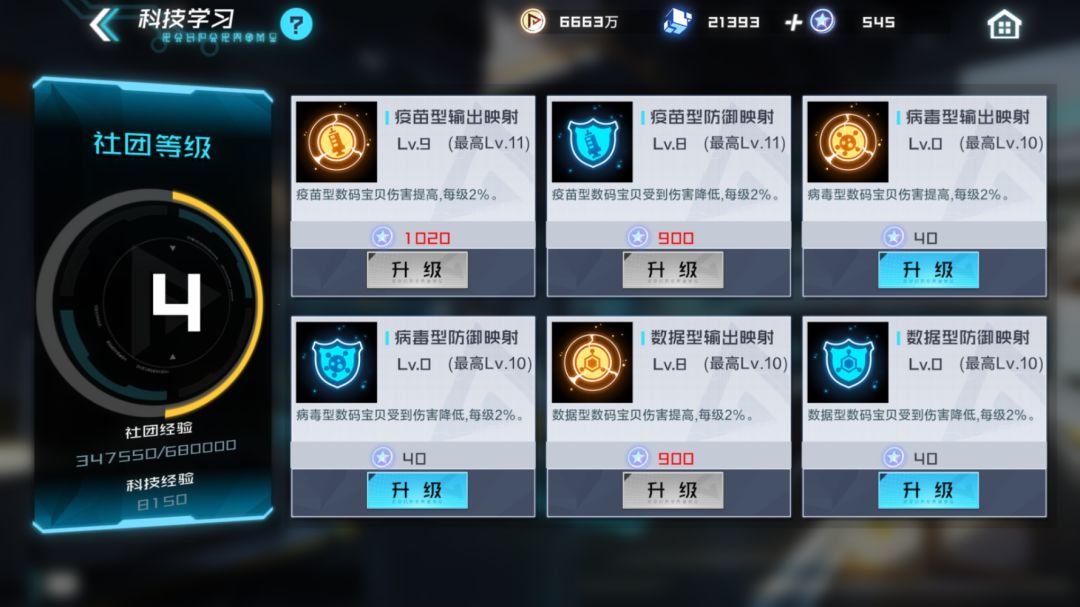 接着第4点是有关于社团的,其中的这个社团科技大家可以多多升级下,对于战力的提升也是非常有帮助的!所以部分社团贡献就不要在轻易的拿去买东西了!