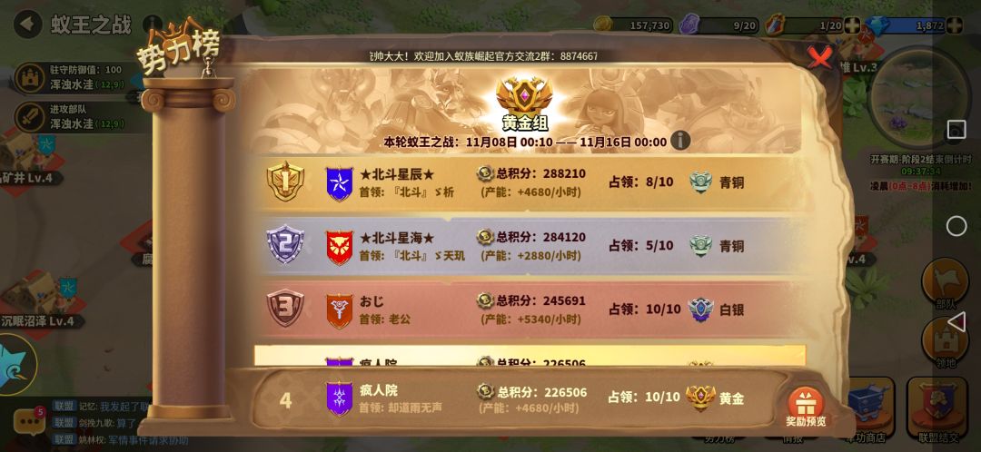 302区被圣魂打的全部搬家跑到308区建盟打蚁王,还联合310的,3个联盟欺负一个都没占到便宜。不知道他们被圣魂的打的多惨