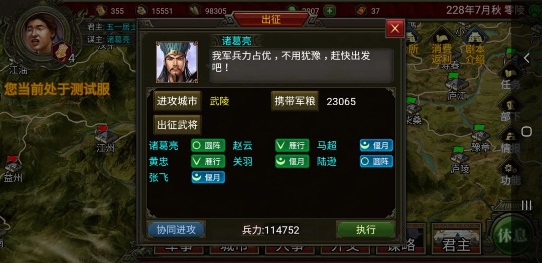 关于后续任务的完成,我的思路是一直种田到粮超过170000,能正面干翻东吴部队时,先取长沙,再攻桂阳,最后打武陵,打完直接发粮50000,用高亲和武将发粮,每个城发一次基本上就满了,没满的也只差几点了,用安抚或者发粮涨上去就行了