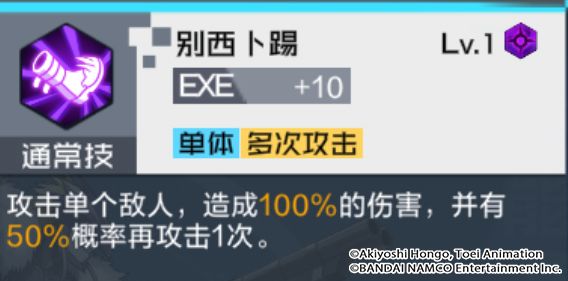 技能解析:别西卜踢拥有较高的单体伤害倍率,且有概率发动二连击,属于较为强力的通常技。
