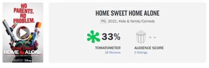 Sweet Home Alone》表现并不出色甚至没达到及格线,烂番茄网站影片番茄新鲜度33%,MetaScore网站分数只有35分。
