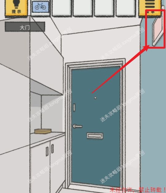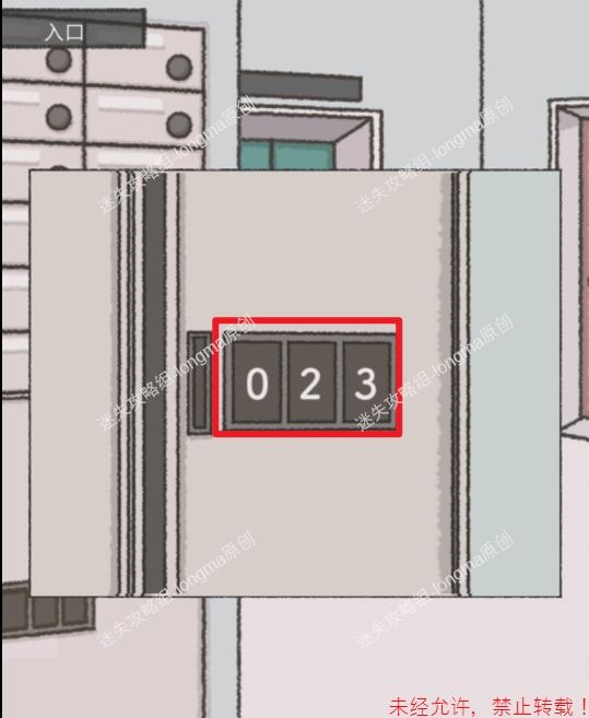 30.来到大门,点击左侧的盒子,输入密码,得到钥匙。30