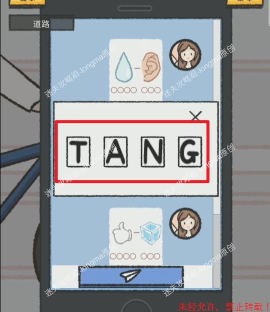 9.查看短信得到密码:TANG(前面物品的英文字母去取后面物品的英文字母,比如眼泪tear-耳朵ear剩下t,最终得出tang=糖)输入TANG,糖的大写拼音。9