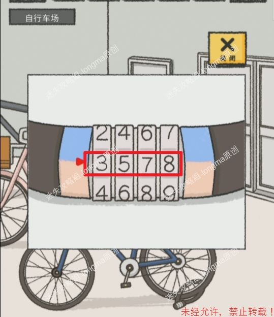 6.回到自行车旁,组装两张照片,得到密码:3578。6