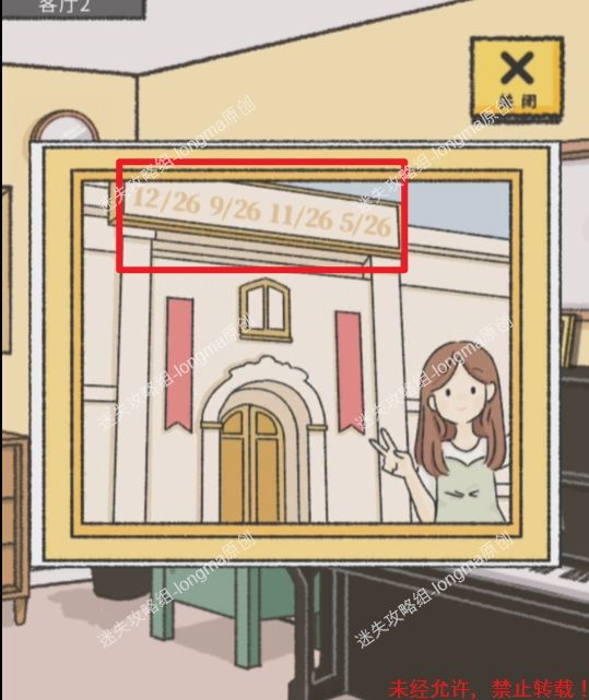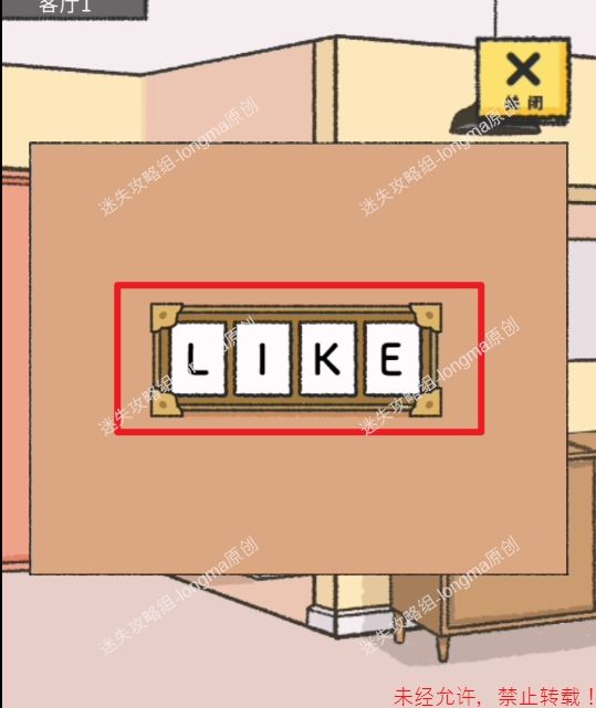 67.点击在客厅2钢琴上的照片,得到密码:LIKE(相册上的数字对应的是英语字母表)。67