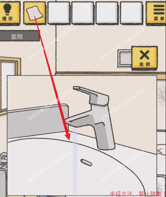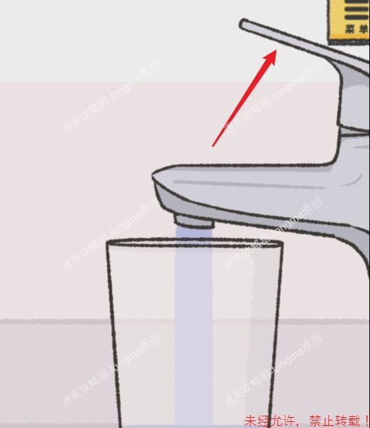 53.点击水池,打开水龙头,将毛巾弄湿,先擦墙,后摖床。53