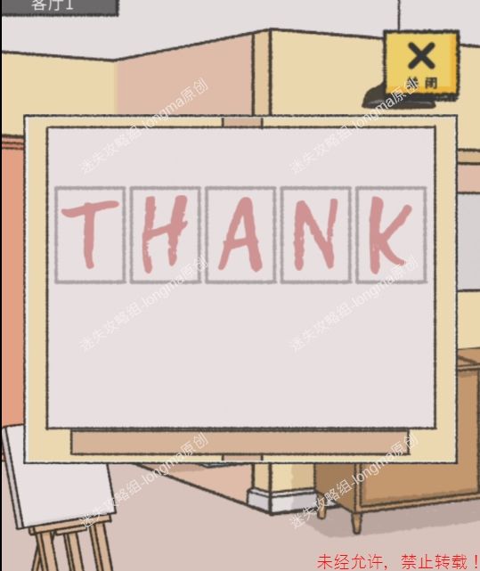 64.点击颜料两次,看其背面,得到颜色和数字,推算出密码:THANK。(比如:白的英文是WHITE,对照白色颜料下的数字4,得到字母T)64